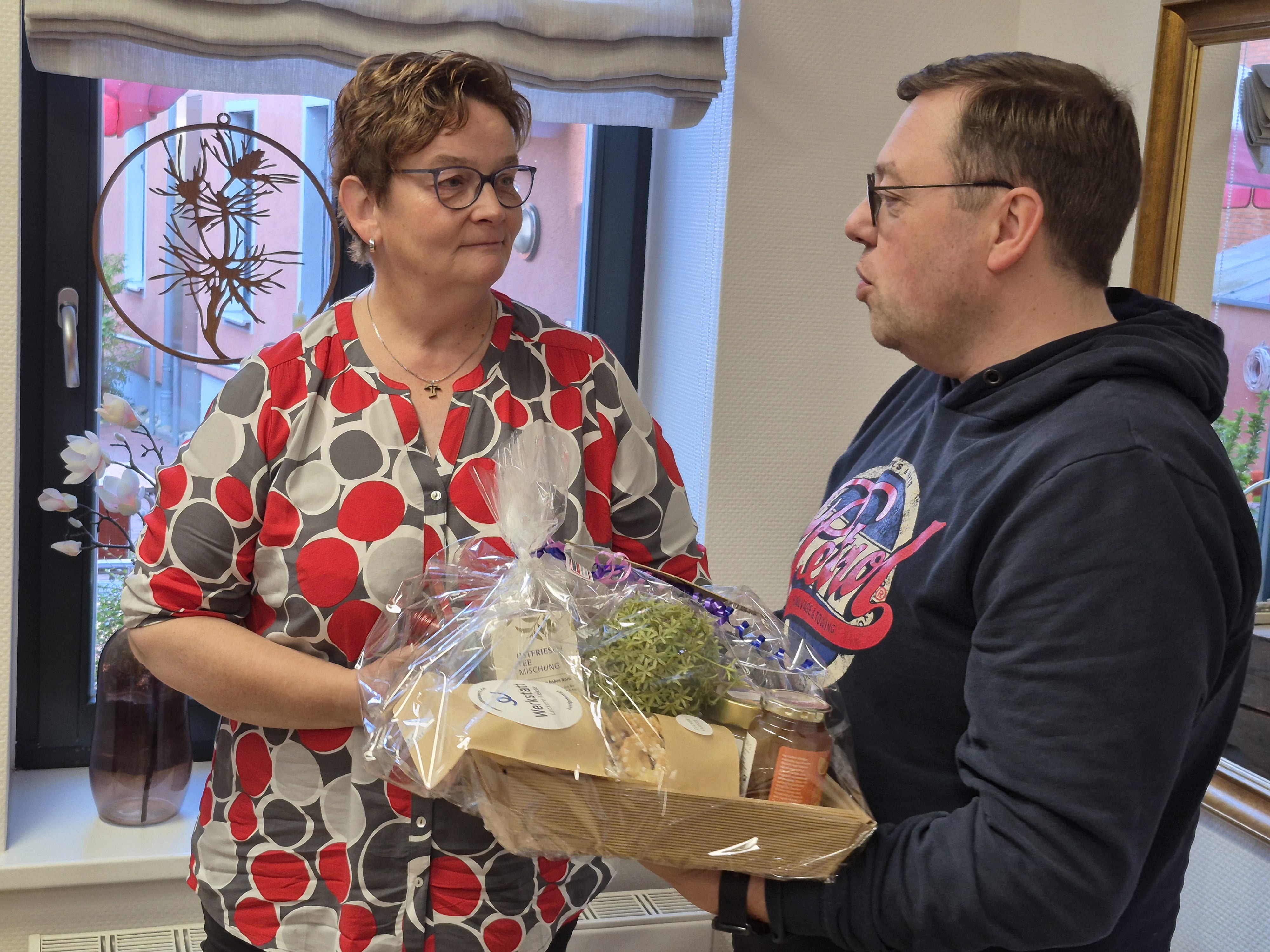 Am 01. Oktober feierte Dagmar Haake (Seelsorgerin in der JVA für Frauen) ihr Dienstjubiläum im Rahmen der Werktagsmesse und einem Frühstück mit dem Seelsorgeteam. Die gelernte Bürokauffrau aus Visbek absolvierte ab 2000 ihre vierjährige Assistenzzeit in Lastrup. Danach folgten Stationen in Garrel, Rom und Löningen, bevor sie im Dezember 2020 in die Gefängnisseelsorge nach Vechta wechselte. Pastoralreferent Mirco Spieker bedankte sich im Namen der Kirchengemeinde bei Dagmar Haake für ihre langjährigen Dienste mit einem kleinen Präsent und wünschte ihr für das weitere Wirken alles Gute und Gottes Segen.