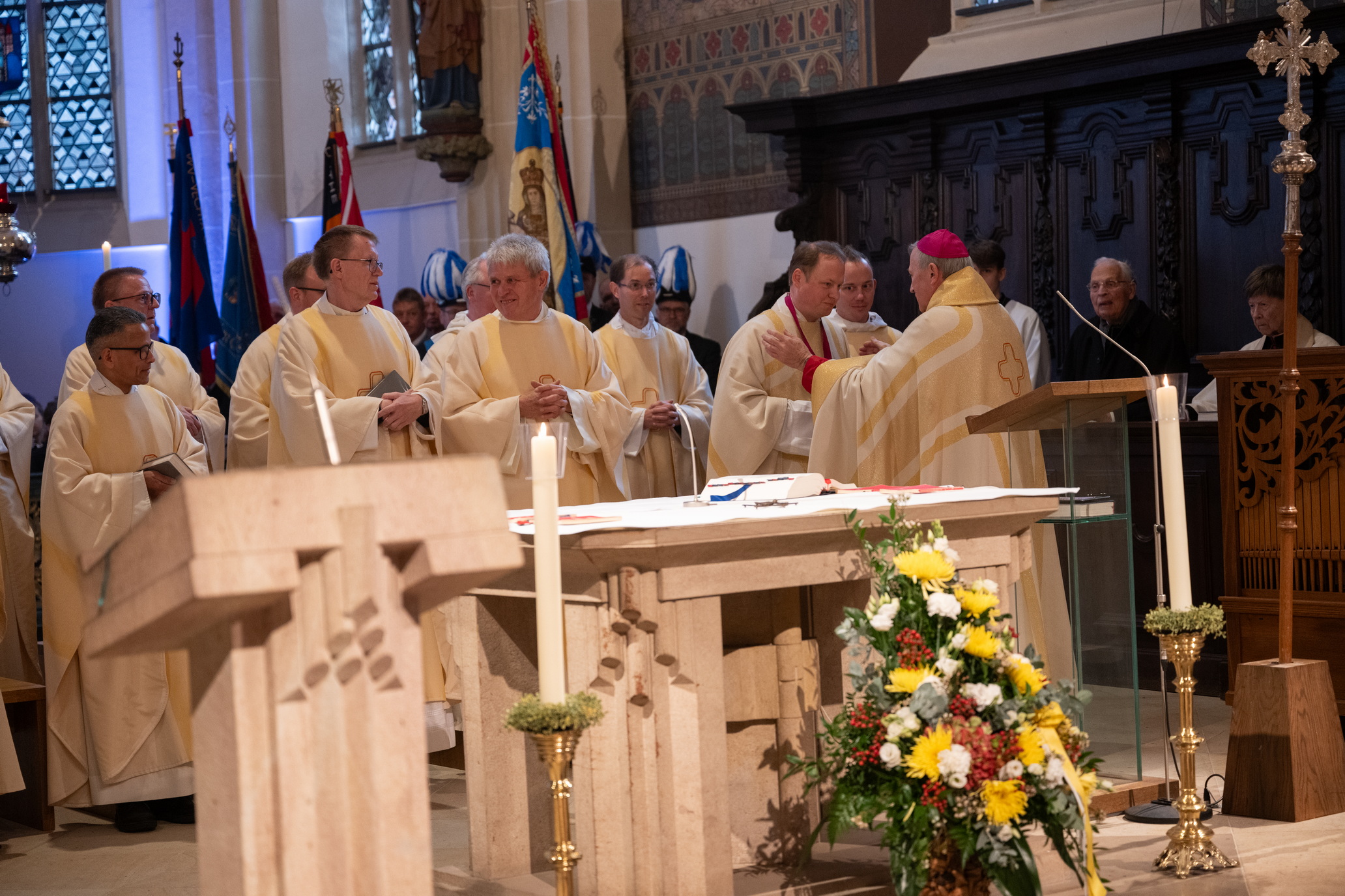 Der Gottesdienst und die anschließende Feier machten deutlich: Die Gemeinde heißt ihren neuen Propst mit großer Wertschätzung, Freude und Hoffnung willkommen. Möge der gemeinsame Weg von der Botschaft geprägt sein, zu der Propst Schwerhoff am Ende seiner Predigt einlud: „Lasst uns gemeinsam einüben, was unser Christsein vertiefen und bereichern kann: die Kunst, Gott zu feiern – in der Kirche und weit darüber hinaus.“ (DR/Fotos: Johannes Hörnemann)
