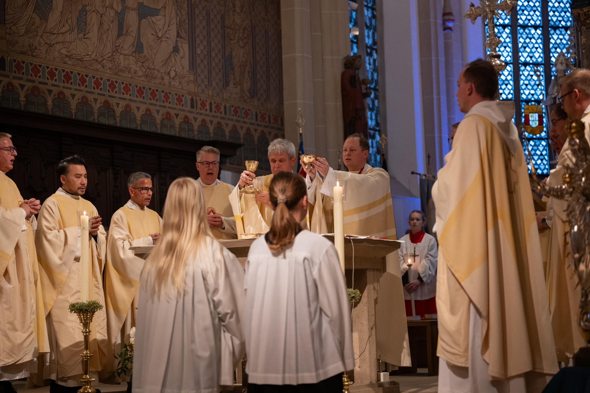 Für seinen eigenen Dienst unterstrich Propst Schwerhoff die dienende Dimension des Amtes: „Ich bin nicht hier, um eine Würde nach außen zu tragen. Ich bin hier, um eine große Botschaft mit euch zu teilen: den Glauben zu verkünden, Menschen zu stärken, die Schwachen im Blick zu behalten und mitten in der Stadt Zeichen der Hoffnung zu setzen.“