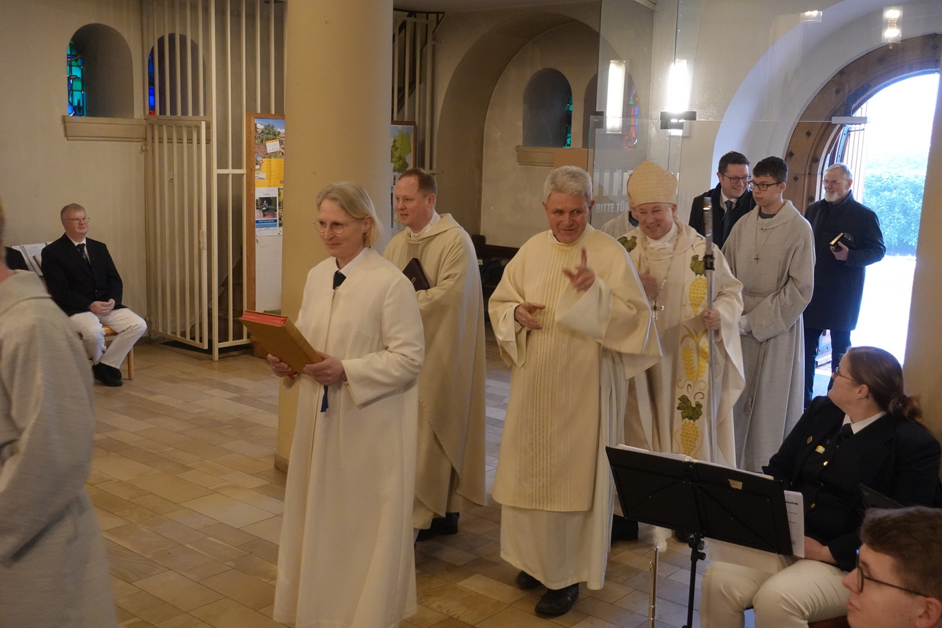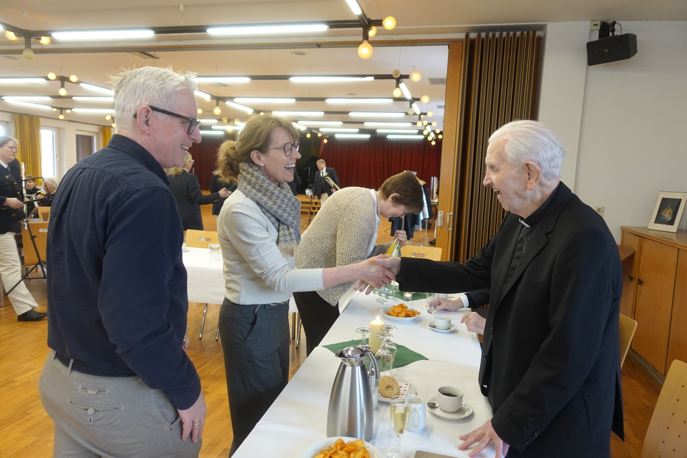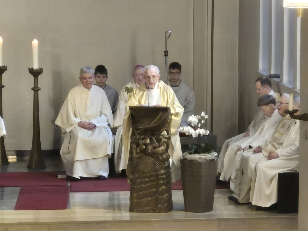 Theising würdigte im Gottesdienst auch Pfarrer em. Franz-Josef Hachmöller aus Bakum. Auch er beging am 2. Februar sein eisernes Priesterweihejubiläum. Aus gesundheitlichen Gründen fand seine Feier im kleinen Rahmen im Pflegeheim statt. Hachmöller war viele Jahre Priester in Wilhelmshaven und lebt seit 2023 in Vechta. „In Vechta kann man alt werden“, hob Pfarrer Christoph Schwerhoff schmunzelnd hervor.