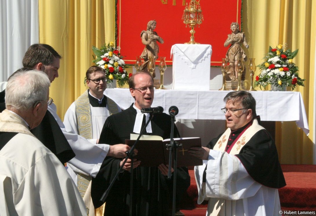 Bei bestem Wetter fand am Fest Christi Himmelfahrt (05.05.) die traditionelle Himmelfahrtsprozession in Vechta statt. Beim Festhochamt vor der Prozession begrüßte Propst Michael Matschke besonders die Dominikanerpatres aus Vechta, die zusammen mit dem gesamten Dominikanerorden in diesem Jahr das 800-jährige Jubiläum der Ordensgründung feiern. Prior Ludger Fortmann ging in der Predigt auf den nach wie vor aktuellen Auftrag ein, dass Evangelium zu bezeugen und zu verkünden.