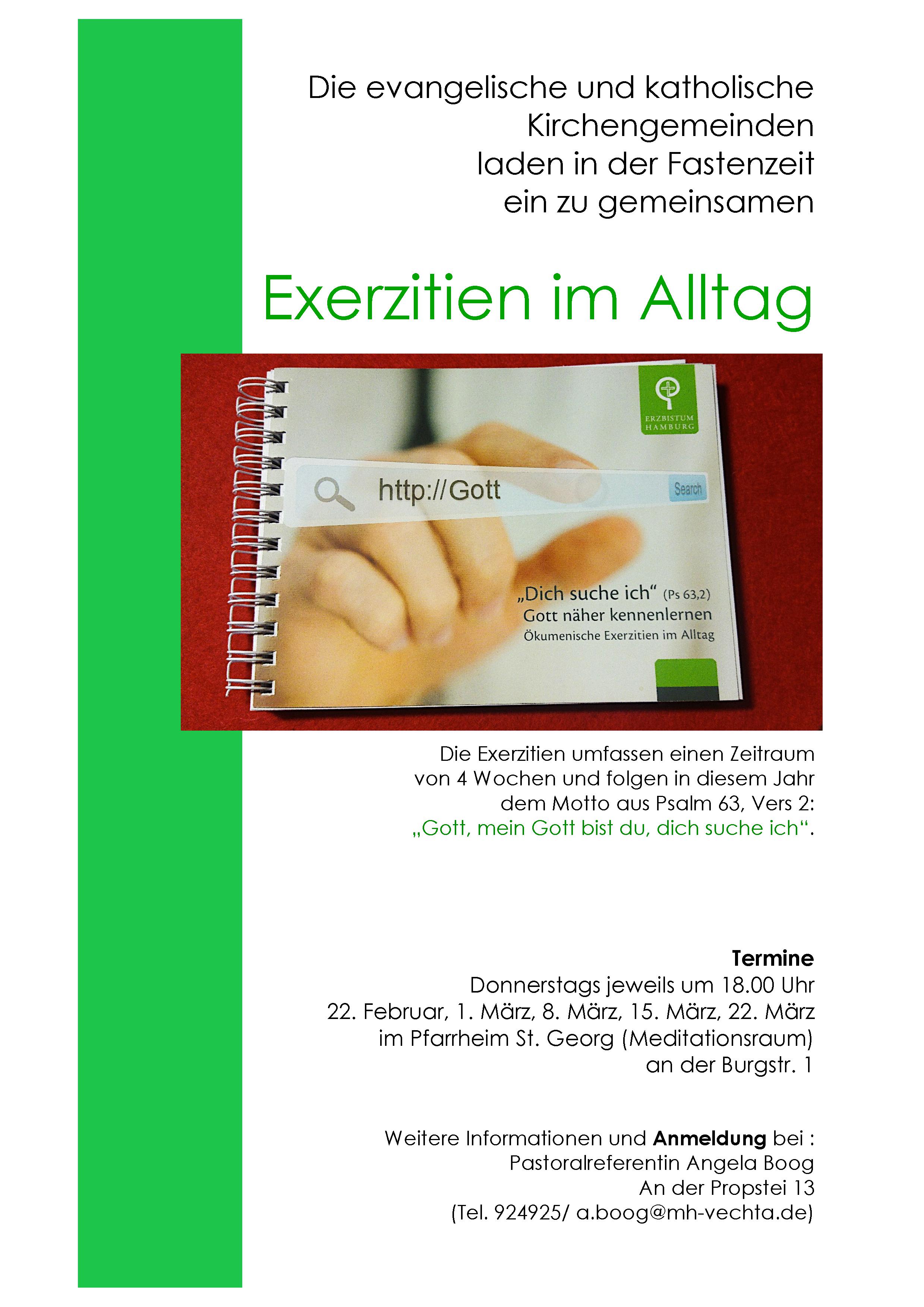 Anmeldung und weitere Informationen bei Pastoralreferentin Angela Boog, An der Propstei 13, Tel. 924925, oder per Mail an a.boog[at]mh-vechta.de